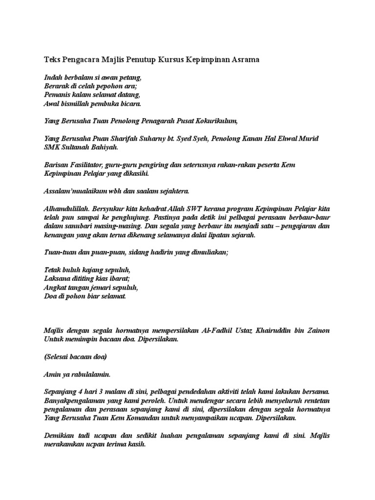 Teks Majlis Penutup Kem Kepimpinan Pengawas Pdf