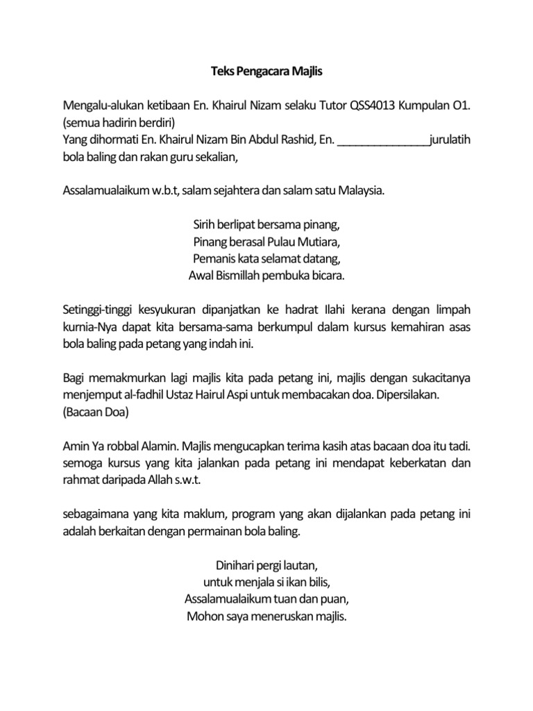 Teks Pengacara Majlis Kursus Pdf
