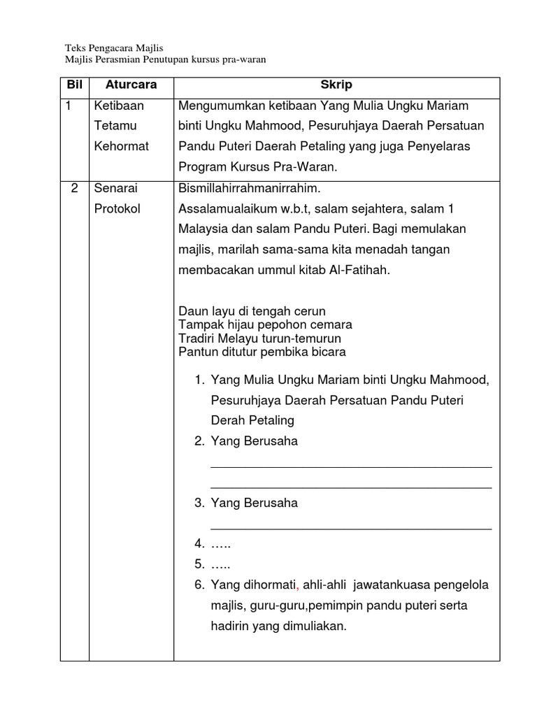 Teks Pengacara Majlis Penutupan Kursus Pra Waran Pdf