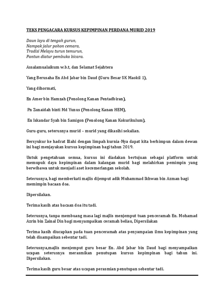 Teks Pengacara Majlis Penutup Kursus Kepimpinan 2 Pdf